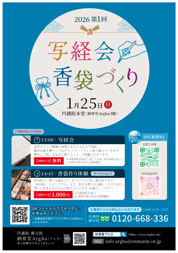 ご本堂では、Arghaにご納⾻された故⼈様ご供養のため、毎朝読経を⾏っております。