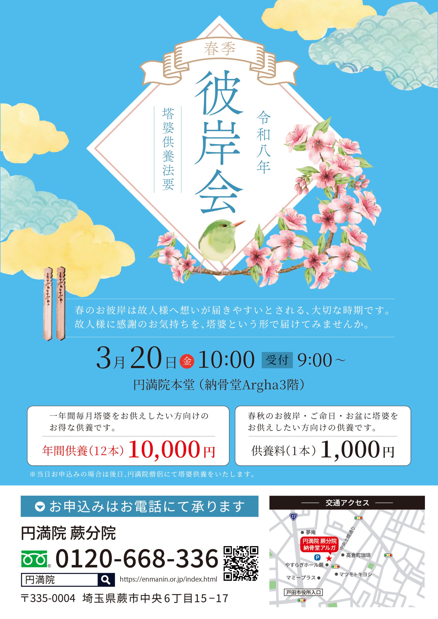 円満院蕨分院にて随時受け付けております。